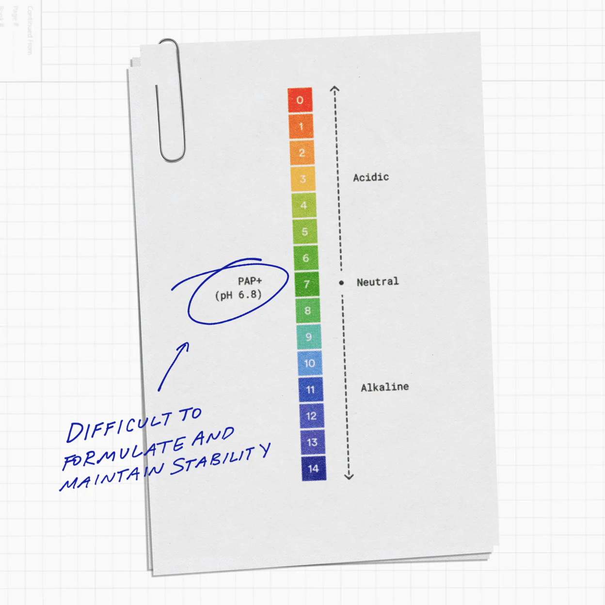 The use of PAP hasn't been widely explored by dentists, possibly due to its difficulty in formulation and stability. The higher the pH level of PAP, the more effective. Unfortunately, this means that the formula loses its effectiveness after a short amount of shelf time.